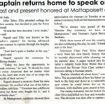 An article from Sippican Week dated November 13, 2014 titled "Retired Navy Captain returns home to speak on Veterans Day" about Robert E. Ellis.