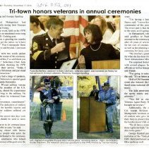 A Sippican Week, dated 11/17/2016, an article titled "Tri-town honors veterans in annual ceremonies". The Benjamin D. Cushing VFW post 2425 has disbanded and given their property to the town of Marion. Selectman Chairman Jody Dickerson thanks the members for their gift and their service to the town.