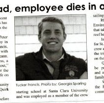 From the February 9, 2017 Sippican Week, an article and digital photograph titled "Tabor grad, employee dies in accident" . Employee's name is Tucker Adam Francis. He graduated from Tabor Academy in 2016. (See Obituaries501).
