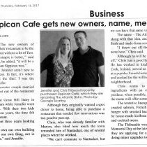 In the February 16, 2017 Sippican Week, an article titled "Sippican Cafe gets new owners, name, menu". The new owners are Jennifer and Chris Thibeault who bought the Sippican Cafe located at 167 Spring Street. They plan to name it The Atlantic Bistro. Chris has worked at the Great Hill Dairy for seven years and was familiar with Marion.