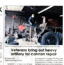 From the May 11, 2017 Sippican Week, an article titled "Veterans bring out heavy artillery for cannon repair". Contains history of the World War II - era 105 mm M101 howitzers acquisition and placement within Marion by the VFW post.