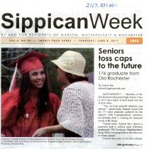 From the June 8, 2017 Sippican Week, an article titled "Seniors toss caps to the future." It is about the Old Rochester Regional High School's graduation that took place on June 3, 2017.