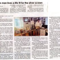 A newspaper article from Sippican Week dated 8/31/2017, titled "Marion Man lives a life fit for the silver screen." It is about Tom Shire. A brief biography of his life, the famous people he has met and his path that led him to become a Marion resident.