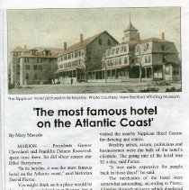 An article and color digital photograph titled "The most famous hotel on the Atlantic Coast" from the August 10, 2017 Sippican Week. The Sippican Hotel was located at the intersecrtion of South and Water Street in Marion.