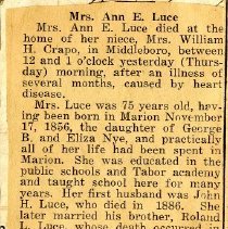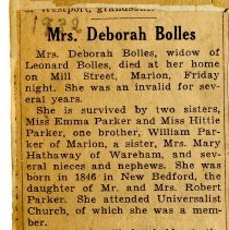 OBIT: Mrs. Charlotte (Delano) Parris at age 91. She was teacher in Marion for 50 years.