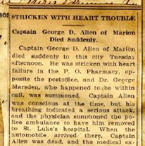 OBIT: Captain George D. Allen of heart attach. He was about 65 years of age