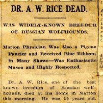 OBIT: Dr. Alger W. Rice at age 59. Breeder of Russian wolfhounds & 32 degree Mason
