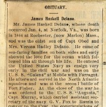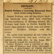 OBIT: James Delano died at his home at age 55 DOB: 08/13/1846